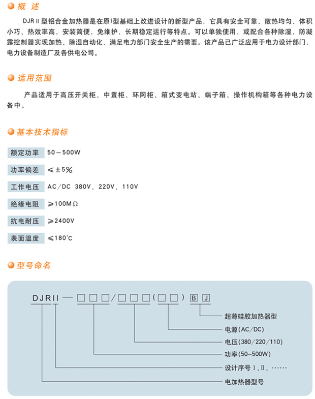 說明:配電柜硅橡膠加熱板可作為凝露、溫度控制器的除濕、加熱配套器件 和其他需要加溫的場合的加熱器件,并用鋁板輔助加熱,使加熱器的熱效率 提高,能有效的延長其使用壽命。可廣泛應(yīng)用高低壓開關(guān)柜,通訊機(jī)柜、環(huán) 網(wǎng)柜、箱變等需要溫度控制的場所。