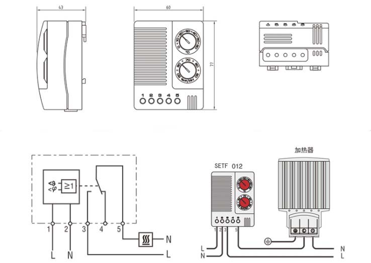 電子溫濕度控制器可以感應(yīng)電器箱內(nèi)的環(huán)境溫度和相對濕度,并在設(shè)定點(diǎn)打開加熱器(或替換風(fēng)扇),防止機(jī)箱內(nèi)凝露的形成。 連接裝置工作時(shí)調(diào)節(jié)旋鈕處的LED燈屏?xí)痢?/span>