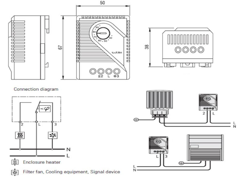 MTH 11機械式相對濕度控制器內(nèi)置感濕元件無需外接,無需電源。通過MTH11控制機柜除濕裝置或加熱器,以提高空氣凝露點,可有效防止凝露造成電氣元件腐蝕和故障。MTH11也可用來控制散熱風扇、警示燈,以及其它設(shè)備。