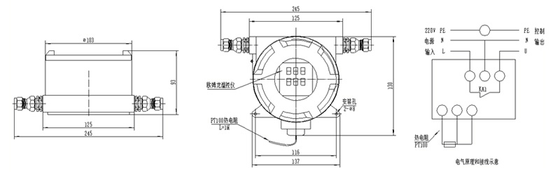 工藝溫度的設(shè)置:可在防爆區(qū)域現(xiàn)場斷電后打開接線盒蓋,通過3位式旋鈕設(shè)置,設(shè)置好了自動運行。
