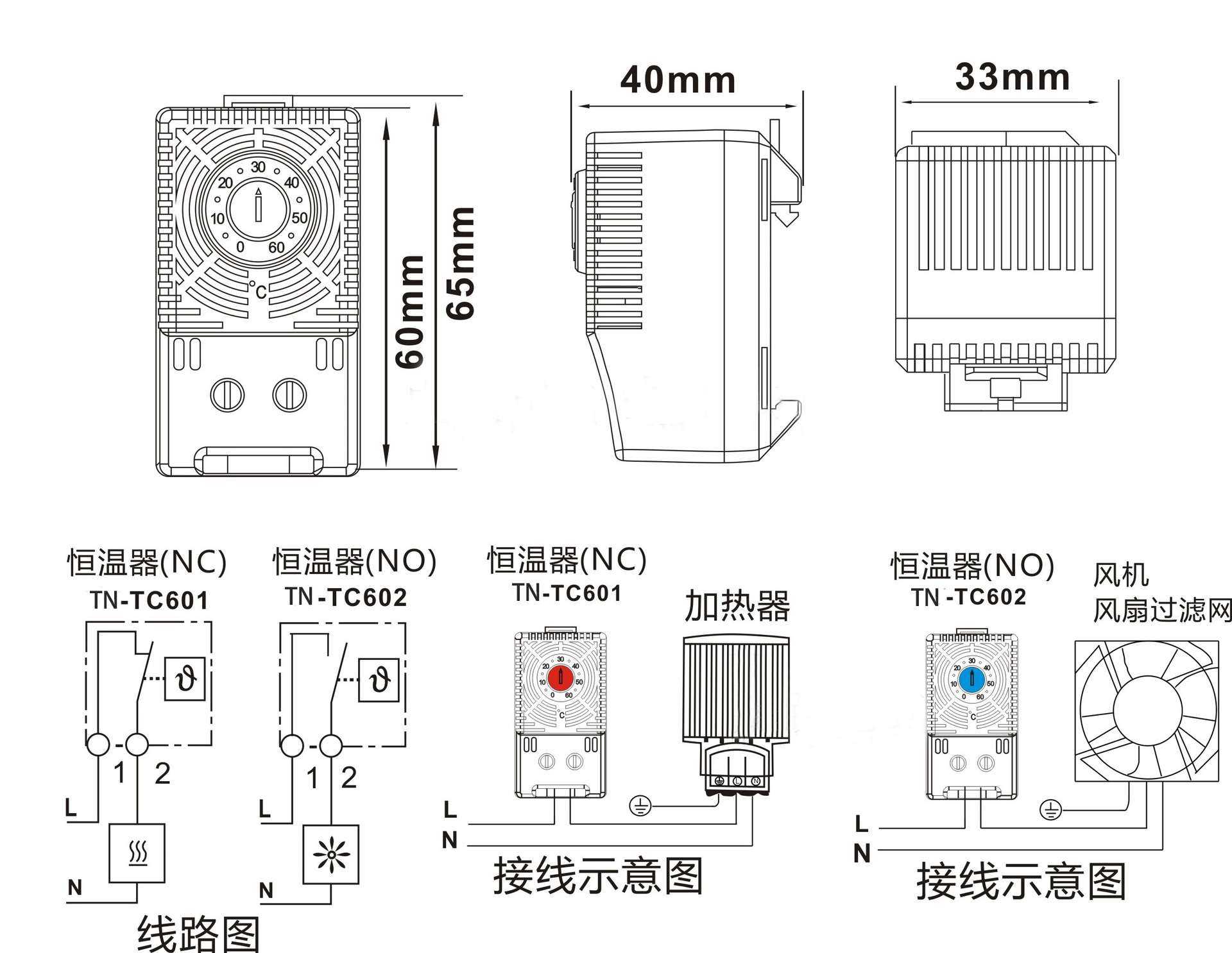 TN-TC601:恒溫器(常閉NC)用于調(diào)控加熱器或加熱裝置避免連續(xù)工作.節(jié)約用電且延長加熱器壽命